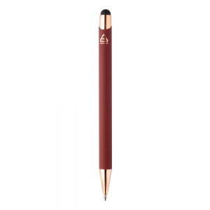 Artikel-Nr: AND808108-08Kugelschreiber mit Touchpen aus recyceltem Aluminium mit gummierter Oberfläche und roségoldenen Elementen. Mit Spezialbeschichtung für Spiegelgravur in Roségold, blauschreibend.