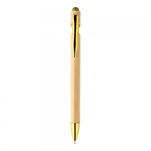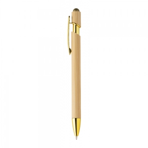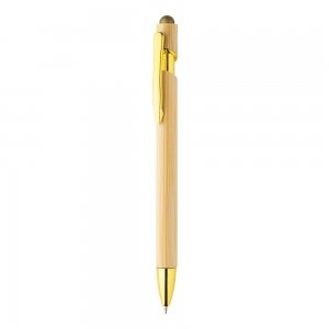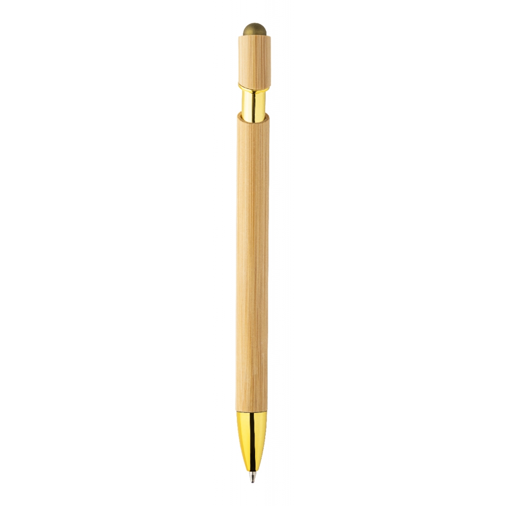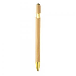 Artikel-Nr: AND800180-98Bambus-Kugelschreiber mit Stylus, glänzenden Metallic-Details und farblich passendem Touch-Stylus, blauschreibend.