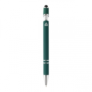Artikel-Nr: AND800148-07AKugelschreiber aus recyceltem Aluminium mit Stylus, gummiertem Gehäuse und Chromdetails, blauschreibend.