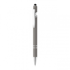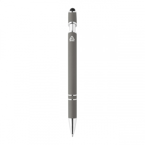Artikel-Nr: AND800148-81Kugelschreiber aus recyceltem Aluminium mit Stylus, gummiertem Gehäuse und Chromdetails, blauschreibend.