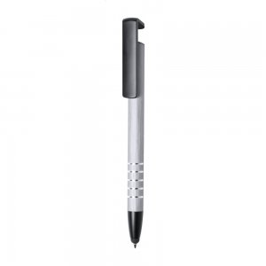Artikel-Nr: AND781370-21Touchpen mit Kugelschreiber aus Aluminium mit Handyhalter (auf dem Clip). Mit blau schreibender Mine.
