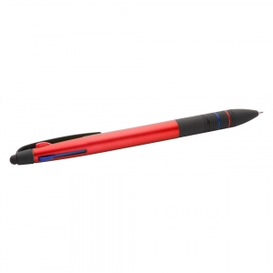 Artikel-Nr: AND809443-05Kunststoff-Kugelschreiber mit Touchpen, Gummi-Griffzone, matter Metallic-Oberfläche und drei unterschiedlichen Minen (schwarz, blau und rot).
