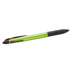 Artikel-Nr: AND809443-07Kunststoff-Kugelschreiber mit Touchpen, Gummi-Griffzone, matter Metallic-Oberfläche und drei unterschiedlichen Minen (schwarz, blau und rot).
