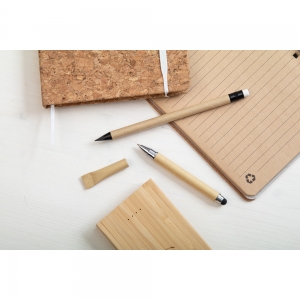 Artikel-Nr: AND808111-00Kugelschreiber mit Touchpen aus Recyclingpapier mit farblich abgestimmter Kappe, blauschreibend.