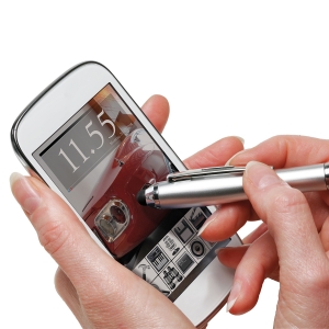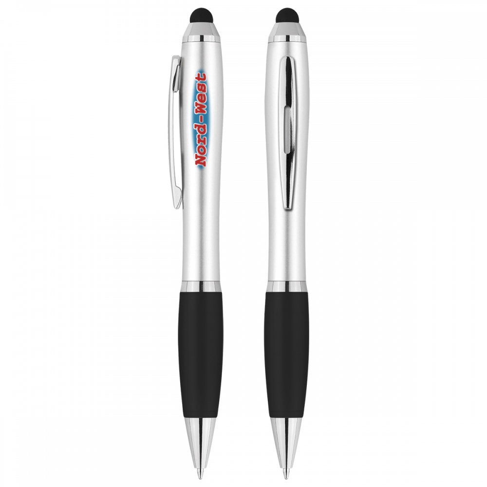 Artikel-Nr: HLA8256-S-6Touchscreen-Drehkugelschreiber "Pluto" mit Gummispitze und Softgripzone, Mine X-20, blau schreibend. AUSLAUFARTIKEL