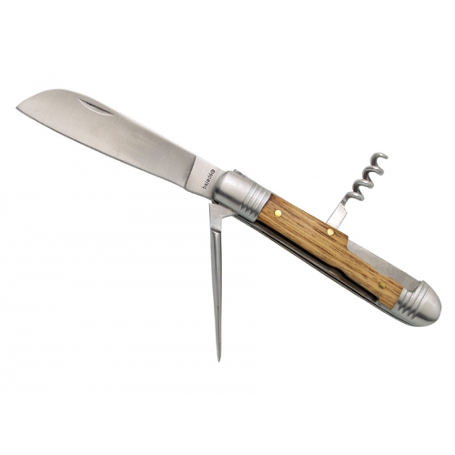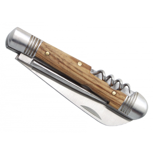 Taschenmesser mit 3 funktionnen : Messer, Korkenzieher, Dorn. Edelstahlklinge. Griff aus exotischer Esche.