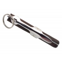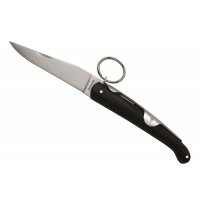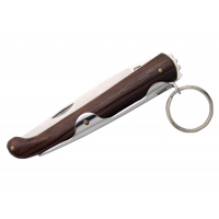 Klinge aus Edelstahl, Griff aus braunem, dunklem Massivholz.