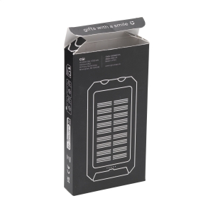 Artikel-Nr: CLP236172Robuste Outdoor-Solar-Powerbank mit 8.000 mAh und einem Gehäuse aus recyceltem ABS mit schützenden Silikonwülsten an den Ecken. Mit Solarpanel, integriertem Kompass, LED-Anzeigeleuchten, LED-Taschenlampe und Karabiner. Spritzwassergeschützt und staubgeschützt. Geeignet zum Aufladen der meisten gängigen Smartphones und anderer Geräte. Eingang: Typ-C DC5V/2.1A. Ausgang: Typ-C DC5V/2.1A. 1 x USB-A-Anschluss und 2 x USB-C-Anschluss. Eingang Solar: 200 mAh. Solare Ladezeit ca. 40 Stunden. Kann über das Stromnetz oder das Solarpanel geladen werden. Das ideale, vielseitige Ladegerät für Outdoor-Aktivitäten. Inklusive USB-C / USB-C-Ladekabel und Gebrauchsanweisung. RCS-zertifiziert. Gesamtes recyceltes Material: 17%. Pro Stück in einer Verpackung.