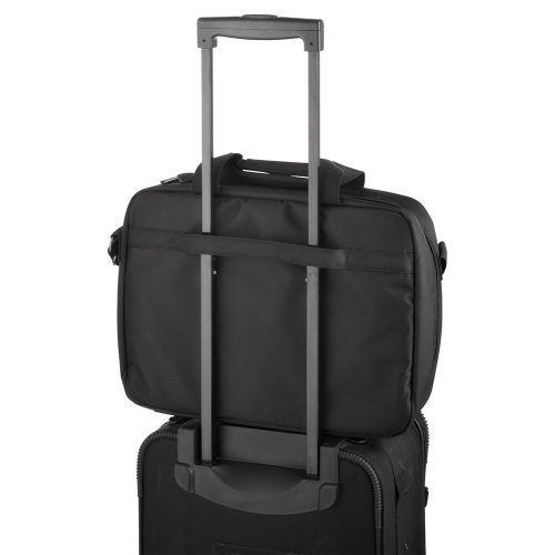 Artikel-Nr: 3619860Travelmate® Business Notebook Tasche mit Kunstlederapplikation, großes Hauptfach mit gepolstertem Notebookfach und vielen weiteren Taschen sowie Organizerfunktion zur Unterbringung der notwendigen Utensilien, 2 Reißverschlussfächer außen, trolleyfähiger Rücken, gepolsterter Schultergurt mit Verstellmöglichkeit und Tragegriffe, hochwertiges 1680D Polyester-Material, ca. 42 x 32 x 13 cm, VE 12 Stück