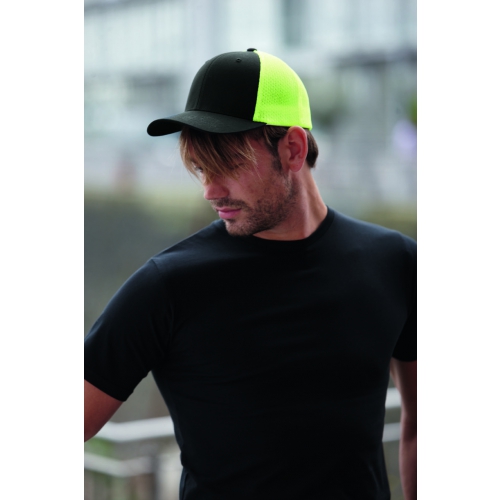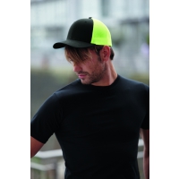 Material: Mesh: 95% Polyester, 5% Elasthan, Schild und Frontpannels: 100% Baumwolle
