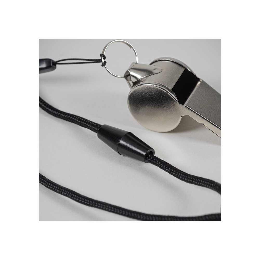 Artikel-Nr: OCBMO2268-14Trillerpfeife aus Metall. Inkl. Lanyard mit Panikverschluss.