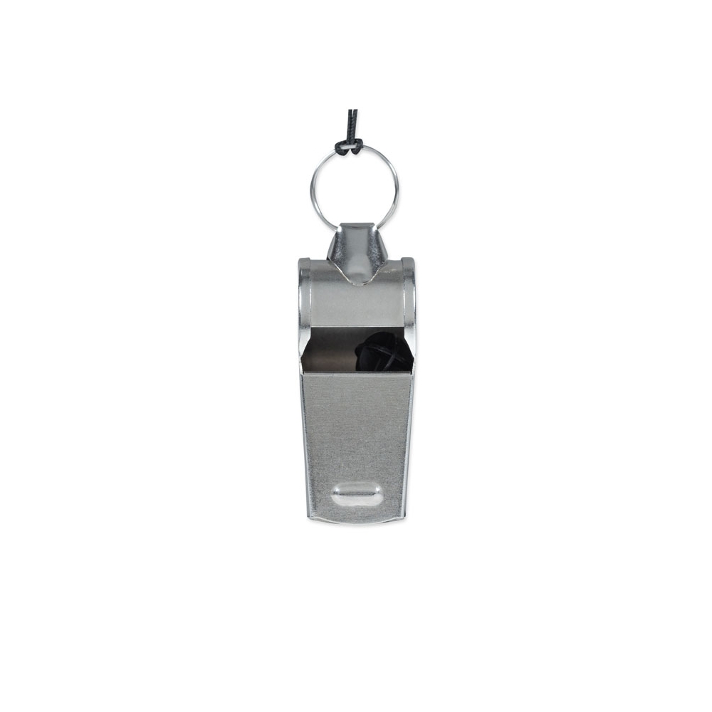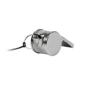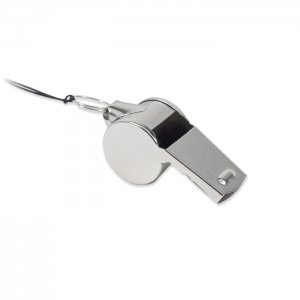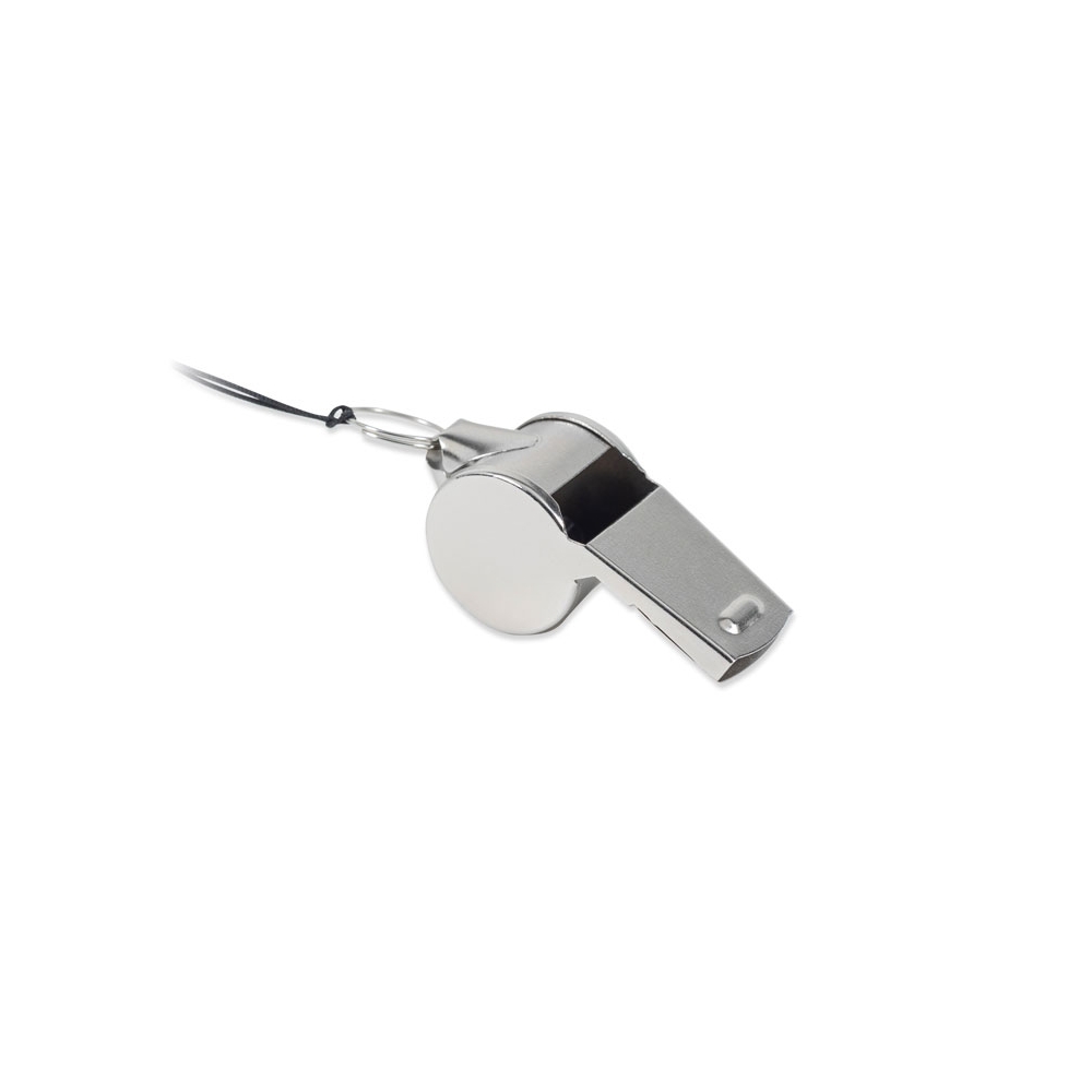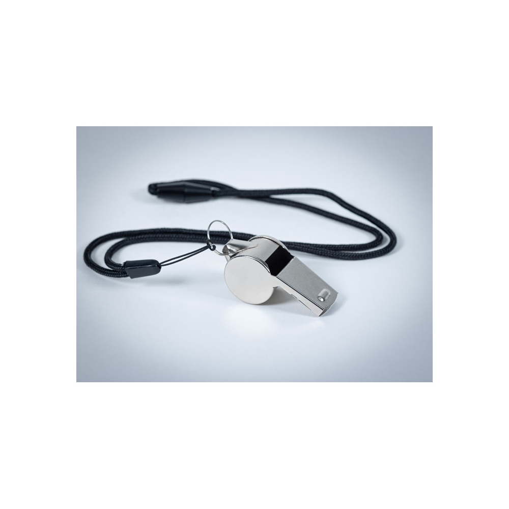 Artikel-Nr: OCBMO2268-14Trillerpfeife aus Metall. Inkl. Lanyard mit Panikverschluss.