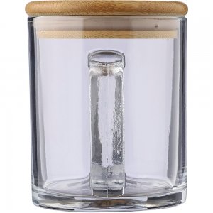 Artikel-Nr: GIV1171291021Trinkbecher aus recyceltem Glas (300 ml), hergestellt aus Natriumkalzium, mit einem Deckel aus Bambus, der als Untersetzer verwendet werden kann. Einzeln verpackt in einer braunen Pappschachtel.