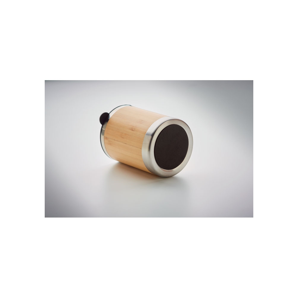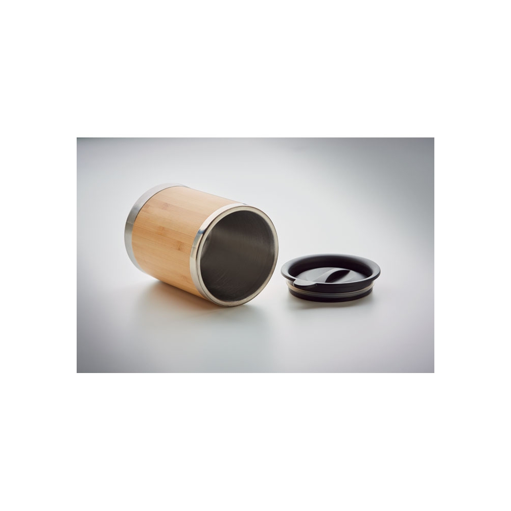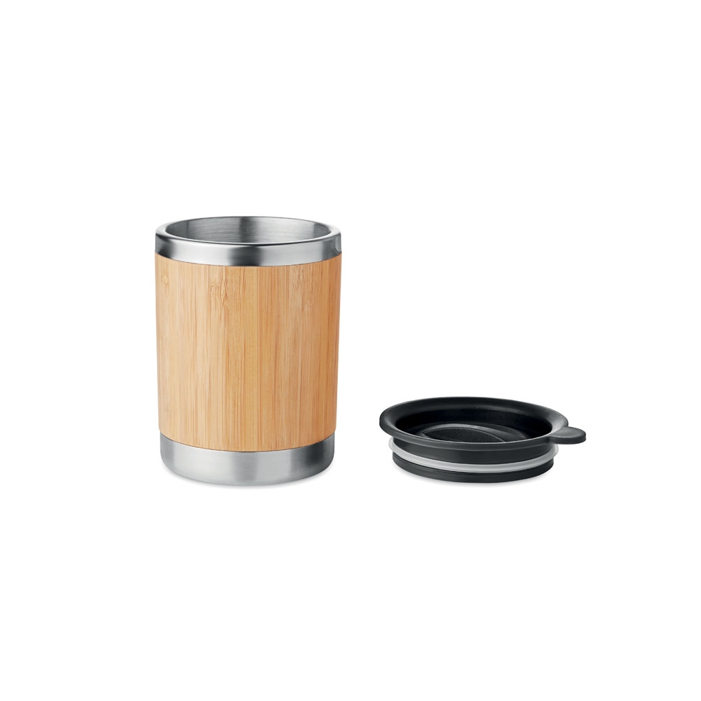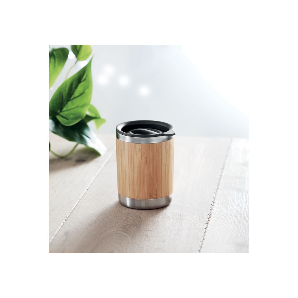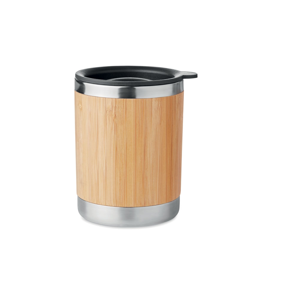 Artikel-Nr: OCBMO9937-40Doppelwandiger Trinkbecher aus Edelstahl mit Bambus-Finish. Drehbare Trinköffnung. Füllmenge: 250 ml. Da Bambus ein natürliches Material ist, können Farbton und Maße pro Artikel variieren. Dies kann zu Abweichungen im Ergebnis der Veredlung führen.