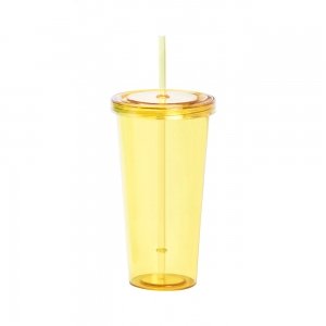 Artikel-Nr: AND741814-02Farbig transparenter Trinkbecher aus Kunststoff mit Trinkhalm. Füllmenge: 750 ml.