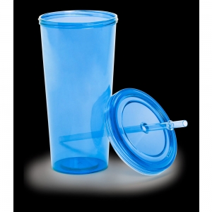 Artikel-Nr: AND741814-06Farbig transparenter Trinkbecher aus Kunststoff mit Trinkhalm. Füllmenge: 750 ml.