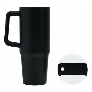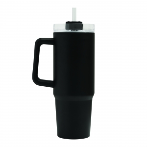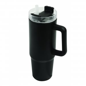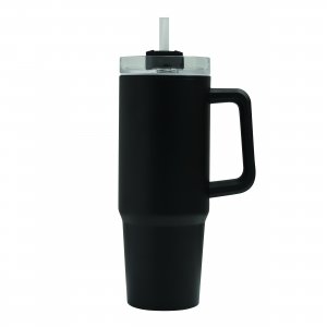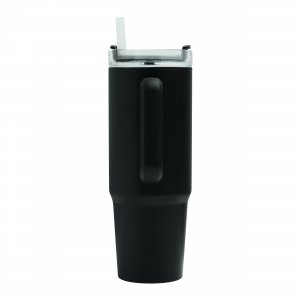 Artikel-Nr: INP56-0304680Trinkbecher DRINK ULTY, doppelwandig: innen aus Kunststoff und außen aus Edelstahl, mit praktischem Griff, transparenter Kunststoff-Deckel mit sicherem Schraubverschluss, Silikon-Dichtring, Trinköffnung mit Drehverschluss und transparentem Strohhalm, beschichteter Boden für gute Oberflächenhaftung, Füllmenge ca. 900 ml, hält ca. 2 Stunden warm und bis zu 4 Stunden kalt, in Box