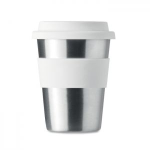 Artikel-Nr: OCBMO6257-06Einwandiger Trinkbecher aus Edelstahl mit Griffteil und Deckel aus Silikon. Füllmenge: 350 ml. Da der einwandige Becher die Hitze nach Außen leiten kann, kann der Artikel heiß werden.