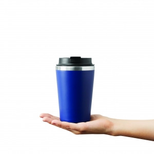 Artikel-Nr: INP56-0304642Trinkbecher TAKE & GO, doppelwandig: innen aus Edelstahl und außen aus Kunststoff, schwarzer Kunststoff-Deckel mit sicherem Schraubverschluss, Silikon-Dichtring und integrierter Trinköffnung zum Aufklappen, beschichteter Boden für gute Oberflächenhaftung, Füllmenge ca. 350 ml, hält ca. 2 Stunden warm und bis zu 4 Stunden kalt