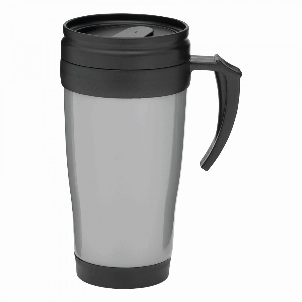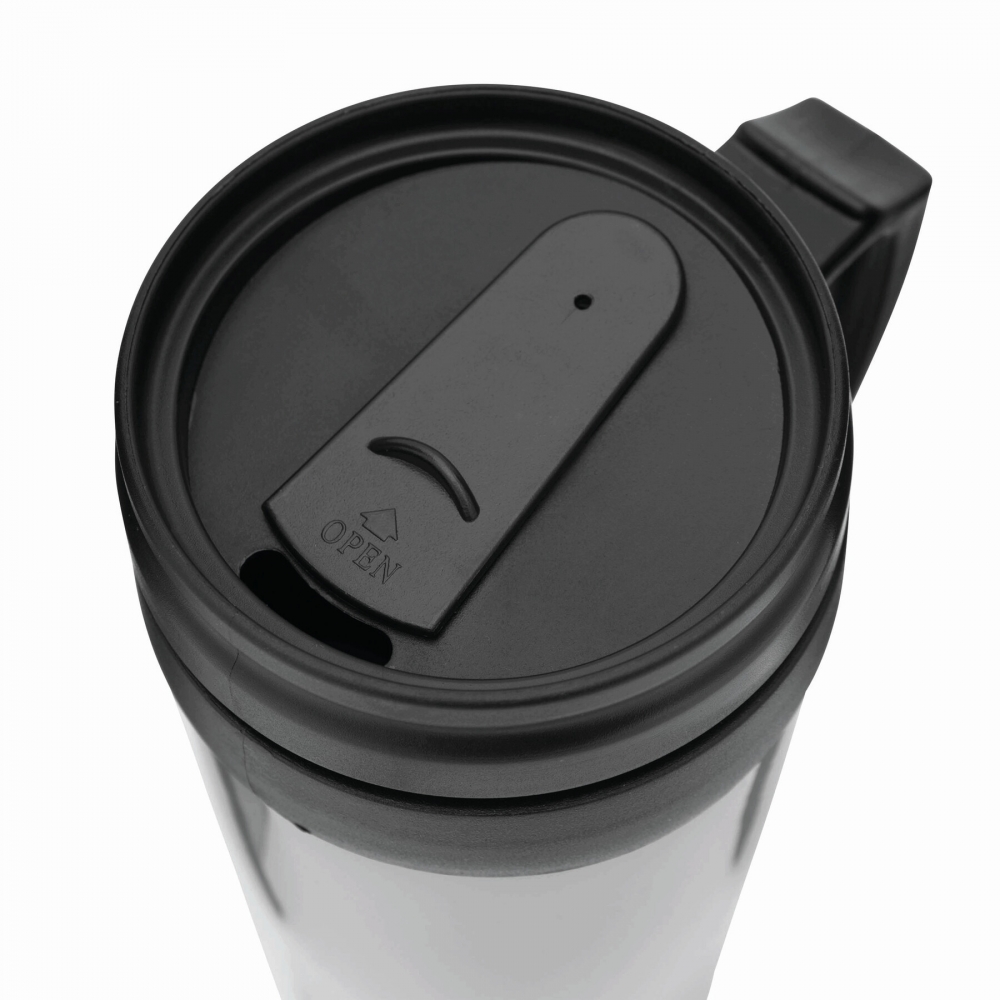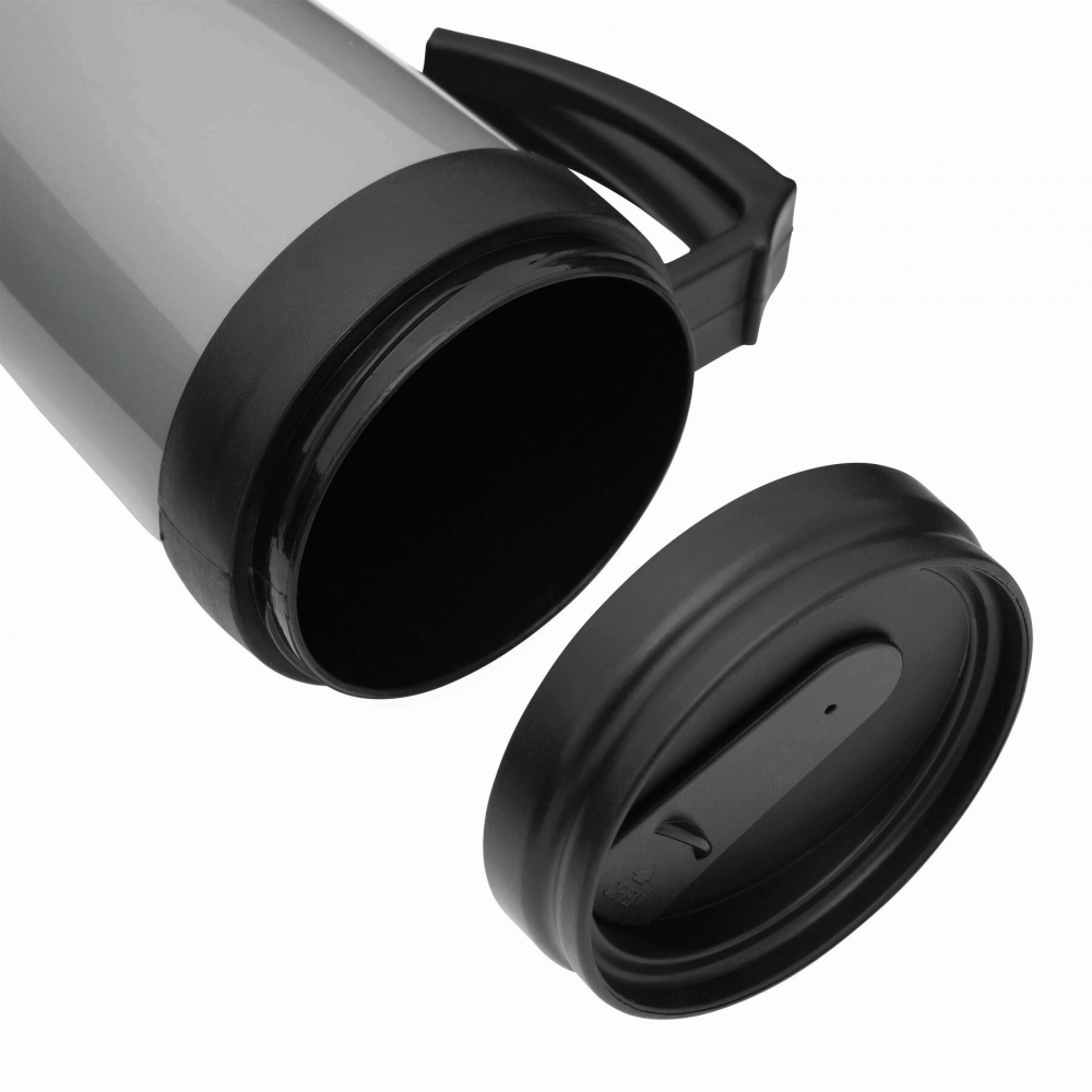 Artikel-Nr: INP56-0304159Trinkbecher WARM-UP, doppelwandig: innen und außen aus Kunststoff, mit praktischem Kunststoffgriff und Trinköffnung im Deckel, Füllmenge ca. 400 ml