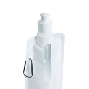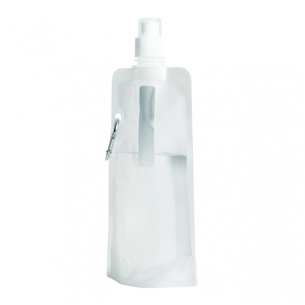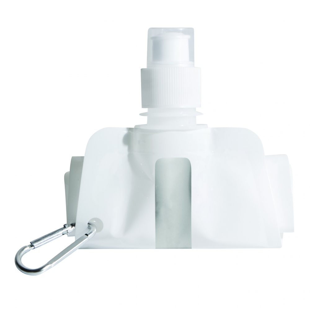 Artikel-Nr: INP56-0603048Trinkflasche AQUAFOLD: falt-, bzw. rollbar im ungefüllten Zustand, transparente Verschlusskappe, mit Karabinerhaken (der Karabiner ist NICHT als Sicherung beim Klettern geeignet), Füllmenge ca. 400 ml