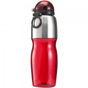 Artikel-Nr: GIV7551008Trinkflasche aus Kunststoff, transparent gefrostet, mit Applikationen aus Edelstahl, Schnellverschluss, inkl. Karabinerhalterung aus Kunststoff, Inhalt ca. 800 ml.