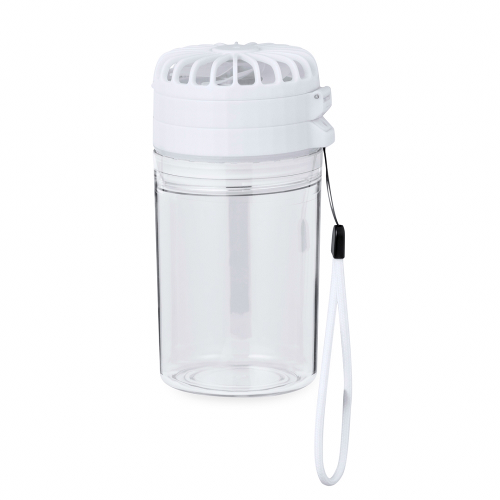 Artikel-Nr: KTO20737001000Praktische Flasche mit Ventilator, aus Tritan und mit einem Fassungsvermögen von 350 ml. BPA-frei, mit hermetischem Schraubdeckel, der einen Ventilator mit 3 einstellbaren Intensitäts- und Positionsstufen enthält. Mit 1200-mAh-Akku und einem zusätzlichen Deckel zur separaten Verwendung. Inklusive Umhängeband zum einfachen Tragen und einzeln verpackt in einer Kraftbox.