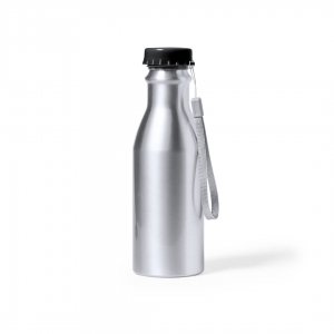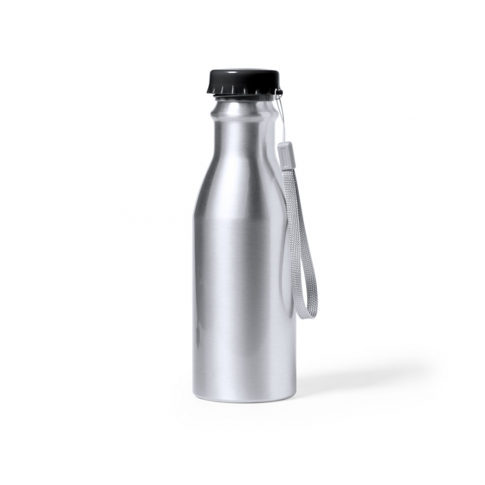 Artikel-Nr: KTO11787009000Trinkflasche mit einem Fassungsvermögen von 500 ml, aus Aluminium mit glänzender Oberfläche. Mit einem schwarzen originellen Schraubverschluss und Trageriemen. BPA-frei und in präsentiert in einer individuellen Kraft-Design-Box.