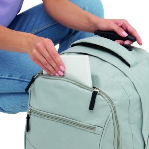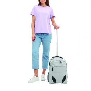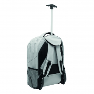 Artikel-Nr: INP56-0219551Trolley-Rucksack TRAILER: kleine Reißverschluss-Vortasche, große Reißverschluss-Vortasche mit Organizer, Reißverschluss-Hauptfach mit gepolstertem Laptopfach, 2 seitliche Netzfächer, gepolsterter Rücken und Schultergurte, Reißverschluss-Fach zum Verstauen der Schultergurte, mit Einhand-Teleskopgestell, Tragegriff, 2 leichtlaufende Skaterrollen inkl. Kleiderschutz