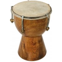 Kleine, hölzerne Hand-Trommel mit Ziegenhaut-Schlagfläche. Achtung! Kein Spielzeug!