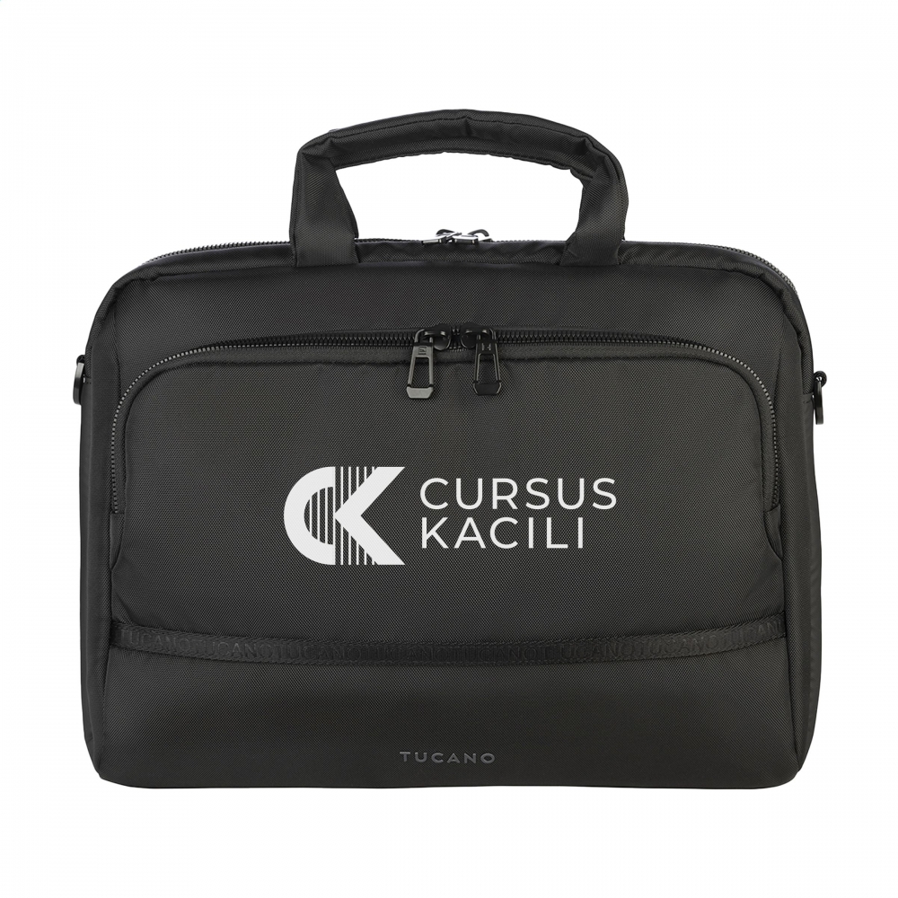 Artikel-Nr: CLP294098Moderne Designer-Dokumententasche der italienischen Marke Tucano. Hergestellt aus recyceltem Kunststoff, darunter 19 recycelte PET-Flaschen. Die Tasche verfügt über zwei geräumige, gepolsterte Fächer, von denen eines mit einem stoßfesten Laptopfach für einen Laptop bis zu 15,6 Zoll oder ein MacBook Pro 16 Zoll ausgestattet ist. Das Reißverschlussfach auf der Vorderseite verfügt über einen Organizer zur Aufbewahrung verschiedener Accessoires. Auf der Rückseite befindet sich ein zusätzliches Reißverschlussfach. Mit gepolstertem, verstellbarem und abnehmbarem Schultergurt und doppelt gepolstertem Tragegriff. Komplett gefüttert. Fassungsvermögen ca. 13 Liter.