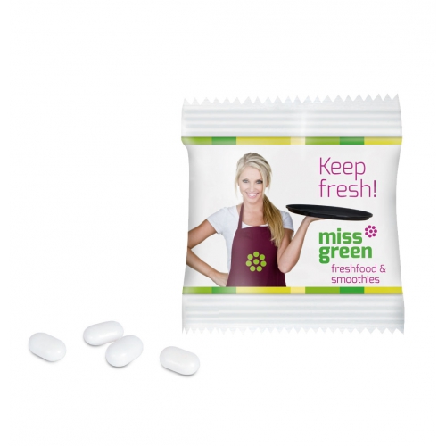 Artikel-Nr: 4287405-4-tca, 5 Tic-Tac Dragees mit Pfefferminz- oder Orangengeschmack in weißer oder transparenter Folie rundum bedruckt,Lieferzeit ca, 3 Wochen nach Freigabe, Haltbarkeit 9 Monate inkl. 1-farbiger Druck, zzgl. Drucknebenkosten