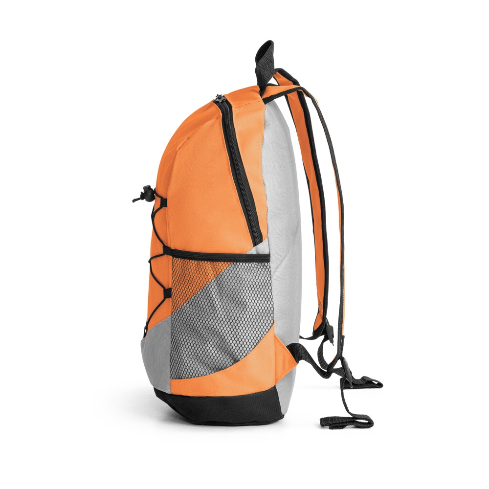 Artikel-Nr: PST92471-128Rucksack aus 600D mit Hauptfach und zwei Mesh-Seitentaschen. Die elastische Schnürung auf der Vorderseite verleiht dem Rucksack einen modernen Stil. Rückseite und Schultergurte sind gepolstert. Kapazität bis zu 15 L. 250 x 420 x 180 mm