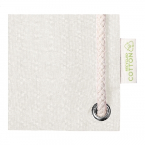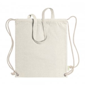 Artikel-Nr: AND721896-00Turnbeutel aus recycelter Baumwolle mit dicken geflochtenen Kordeln und langen Griffen. Auch verwenbar als Einkaufstasche. Material: 100% recycelte Baumwolle (140 g / m²).