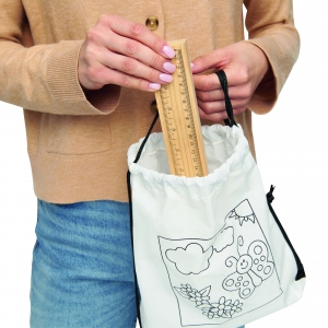 Artikel-Nr: INP56-0504113Turnbeutel zum Bemalen COLOURFUL HOBBY: Beutel mit Kordelzugverschluss, aufgedrucktes Motiv, 4 Filzstifte zum Ausmalen