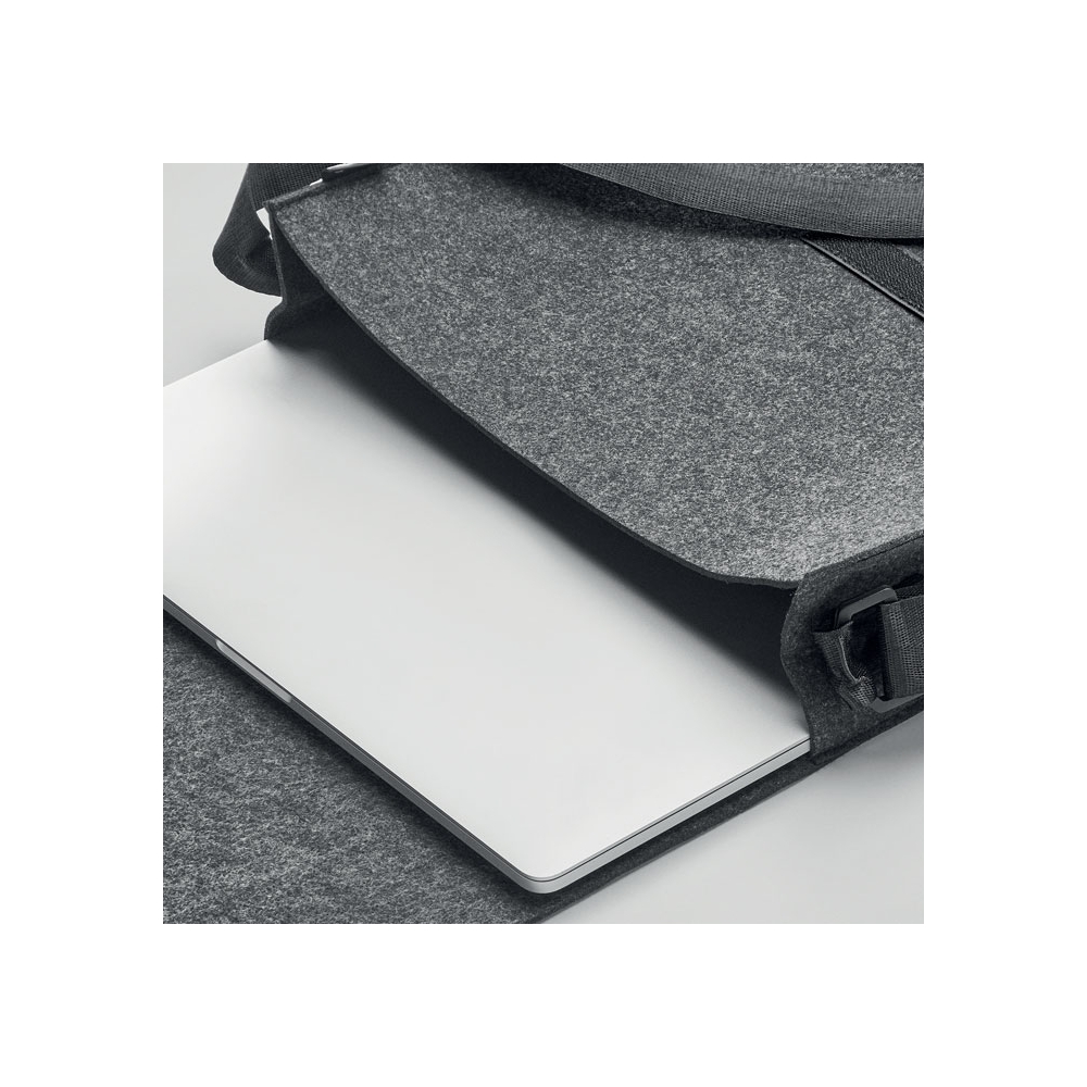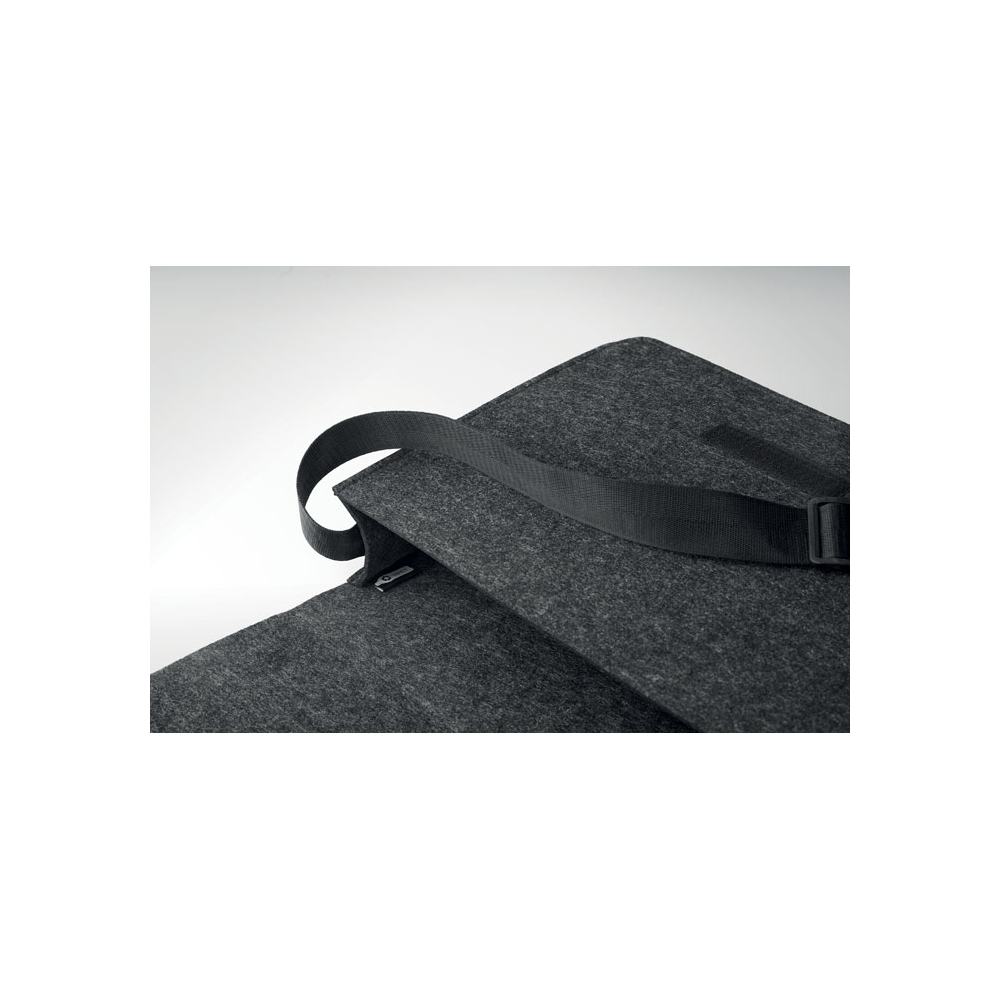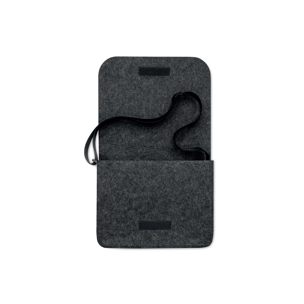 Artikel-Nr: OCBMO6186-15Umhängetasche aus RPET-Filz. Klettverschluss und Umhängegurt. Bietet Platz für einen 15'' Laptop.