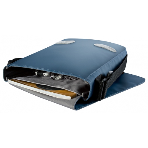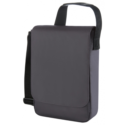 hochformatiges Hauptfach mit Organizer-Elementen, flaches Einsteckfach innen, bequemer Schultergurt, großer Überschlag mit Klettverschluss ideal als Druckfläche für Ihre Promotion