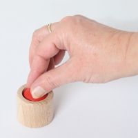 Kniffliges Geduldspiel aus Holz. Wie bekommt man den unfassbaren Zylinder aus dem Fass?