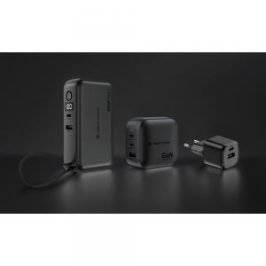 Artikel-Nr: XND3019901Ultimatives GAN-Ladegerät für ultraschnelles Laden mit 65W. Hybridladen ist nun Realität geworden. Eureka kann sowohl als 35W 10.000mAh Powerbank als auch als 65W GAN-Wandladegerät verwendet werden. Während Sie Ihre Geräte aufladen, wird die Powerbank selbst aufgeladen. Nehmen Sie sie aus der Steckdose, um das Haus mit einer voll aufgeladenen Powerbank zu verlassen. GAN ist eine neue Ladetechnologie, die eine viel kleinere Größe für leistungsstarke Adapter, weniger Wärme und somit mehr Sicherheit sowie eine höhere Energieeffizienz ermöglicht, sodass beim Ladevorgang weniger Energie verloren geht. Eureka wird mit 1 USB-A-Port, 1 Type-C-Port und 1 integriertem Type-C-Kabel geliefert. Mit USA-, EU- und UK-Adapter, damit Sie sie überall hin mitnehmen können. Eureka wird aus einem RCS (Recycled Claim Standard) zertifiziert recycelten, feuerfesten PC hergestellt. Gesamtrezyklatgehalt: 22% basierend auf dem Gesamtgewicht des Artikels. PVC frei. Kunststoffreduzierte Verpackung.