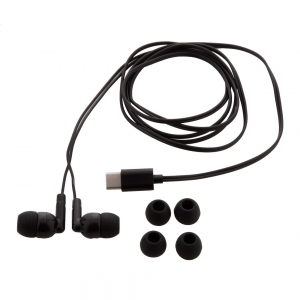 Artikel-Nr: AND800523-10In-Ear-Kopfhörer mit analogem USB-C-Anschluss und 3 Paar Ohrhörern, einzeln im Kunststoffetui. Kompatibel mit Geräten, die einen Audio-Accessory-Modus unterstrützen.