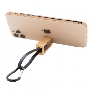 Artikel-Nr: AND864060-10USB-Ladekabel mit Karabiner aus recyceltem Aluminium und Handyhalter aus Bambus. Mit Micro-USB-, USB-C- und Lightning-Anschlüssen. Mit USB- und USB-C-Eingängen.