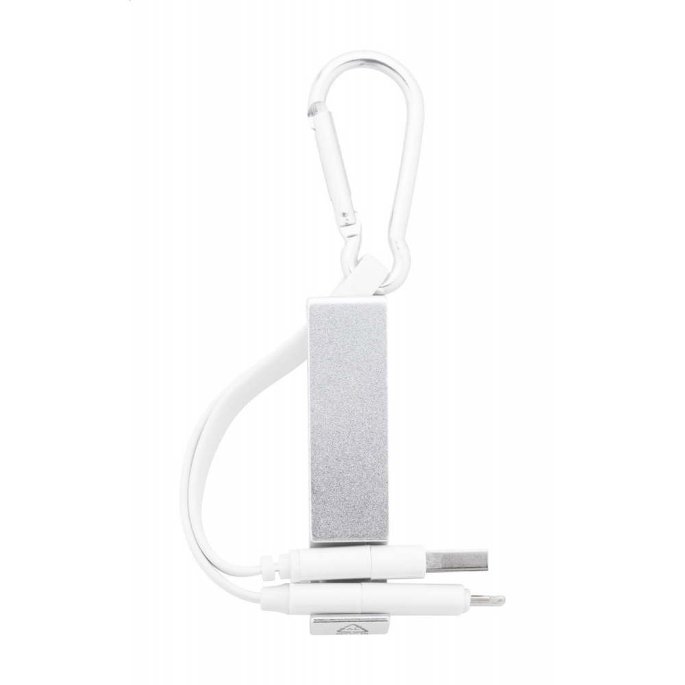Artikel-Nr: AND864058-21USB-Ladekabel mit Karabiner aus recyceltem Aluminium und Handyhalter mit Flaschenöffnerfunktion. Mit Micro-USB-, USB-C- und Lightning-Anschlüssen. Mit USB- und USB-C-Eingängen.