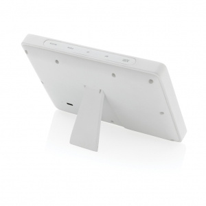 Artikel-Nr: XND279319Große Wetterstation aus RCS (Recycled Claim Standard)-zertifiziert recyceltem ABS und 100% FSC®-Bambus. Gesamter Recyclinganteil: 76% bezogen auf das Gesamtgewicht des Artikels. Die RCS-Zertifizierung gewährleistet eine vollständig zertifizierte Lieferkette der recycelten Materialien. Mit hochwertigem LED-Bildschirm. Funktionen: Uhr, Wecker, Kalender, Temperatur, 12/24-Stunden-Option, Fahrenheit / Celsius. Inklusive 100cm Type-C Ladekabel aus RCS-zertifiziertem Recycling-TPE. Verpackt in FSC®-Mix-Kraftkarton.