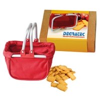 Artikel-Nr: 449004055Dieses rote kleine Körbchen beinhaltet Butter-Spekulatius zum Genießen. Klein und praktisch, dient er als Aufbewahrungskorb vieler gesammelter Utensilien. Einsatzmöglichkeiten: alles für den Schreibtisch, Notizen oder Badeutensilien und Werkzeug, Taschenlampe, Flaschenöffner, Streichhölzer. Es gibt viele Dinge, die schnell ein Behältnis suchen. Zusammengefaltet im Präsentkarton überreicht, macht dieser pfiffige Korb Freude. Werbeeindruck auf dem Standardmotiv der umlaufenden Banderole oder eine eigene Gestaltung, jeweils ab 250 Stück. Ein Tampondruck direkt auf dem Korb ist ab 100 Stück möglich. Zutaten: WEIZENMEHL, Zucker, BUTTER (16%), SÜßMOLKENPULVER, Karamellzuckersirup, BACKTRIEBMITTEL (Natriumhydrogencarbonat, Ammoniumhydrogencarbonat), AROMEN, VOLLEIPULVER, Salz, Emulgator (SOJALECITHIN).