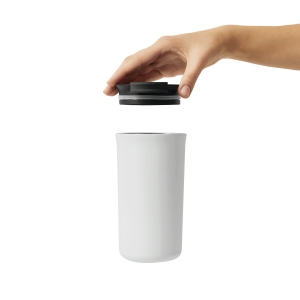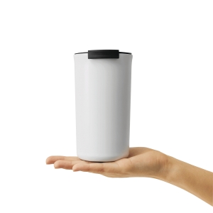 Artikel-Nr: INP56-0304659Vakuum-Isolierbecher NOBLE, doppelwandig: innen und außen aus Edelstahl, schwarzer Kunststoff-Deckel mit Silikon-Dichtring, integrierter Trinköffnung zum Aufklappen, Füllmenge ca. 450 ml, hält ca. 8 Stunden warm und bis zu 12 Stunden kalt, in Box