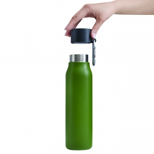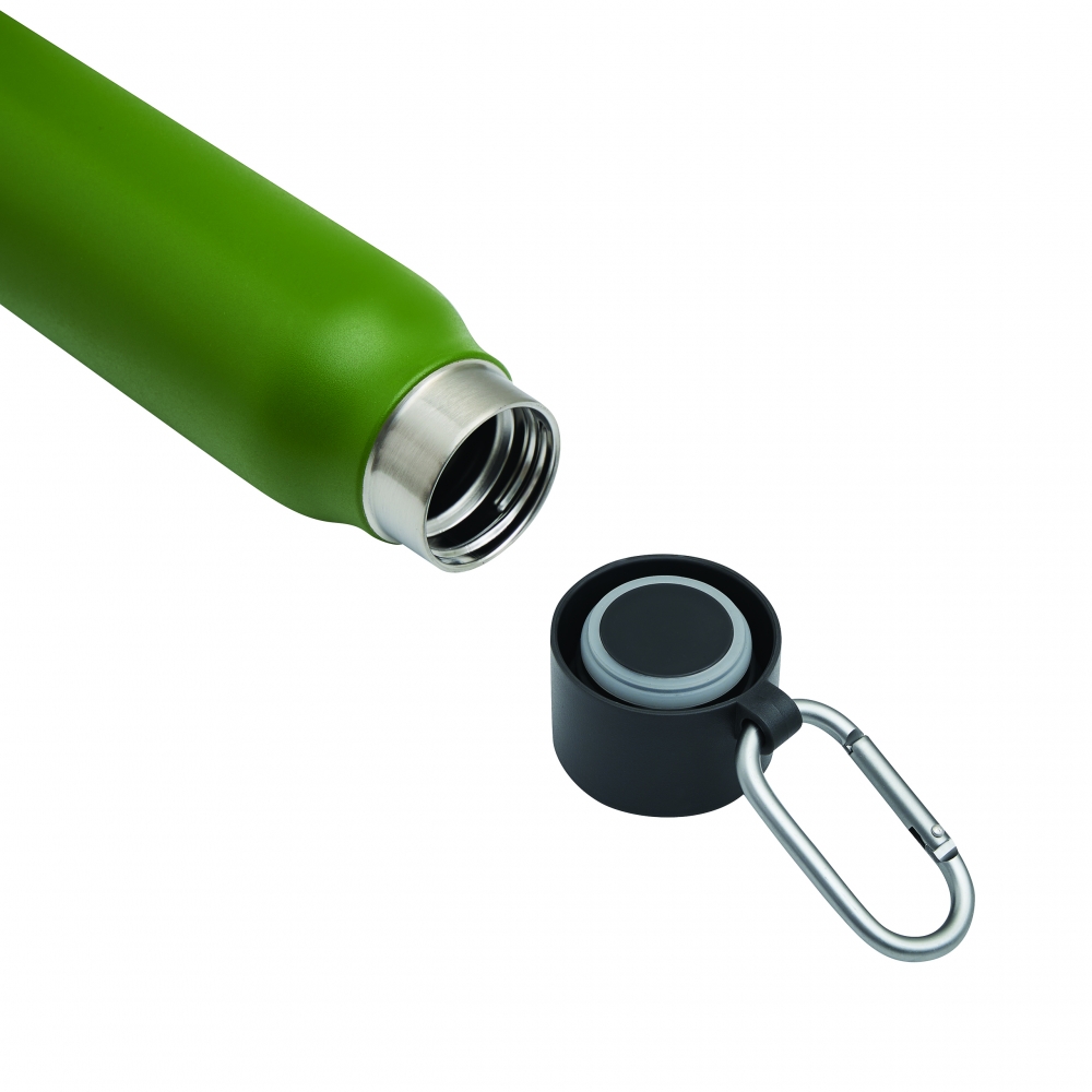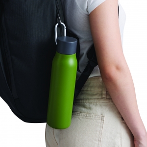 Artikel-Nr: INP56-0304657Vakuum-Isolierflasche ALPINE PEAK, doppelwandig: innen aus recyceltem Edelstahl und außen aus Edelstahl, schwarzer Kunststoff-Deckel mit sicherem Schraubverschluss, Silikon-Dichtring und Karabinerhaken (der Karabiner ist NICHT als Sicherung beim Klettern geeignet), Füllmenge ca. 550 ml, hält ca. 8 Stunden warm und bis zu 12 Stunden kalt, in Box