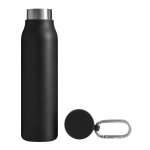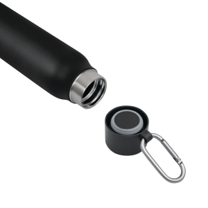Artikel-Nr: INP56-0304654Vakuum-Isolierflasche ALPINE PEAK, doppelwandig: innen aus recyceltem Edelstahl und außen aus Edelstahl, schwarzer Kunststoff-Deckel mit sicherem Schraubverschluss, Silikon-Dichtring und Karabinerhaken (der Karabiner ist NICHT als Sicherung beim Klettern geeignet), Füllmenge ca. 550 ml, hält ca. 8 Stunden warm und bis zu 12 Stunden kalt, in Box
