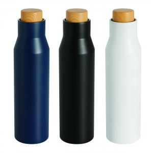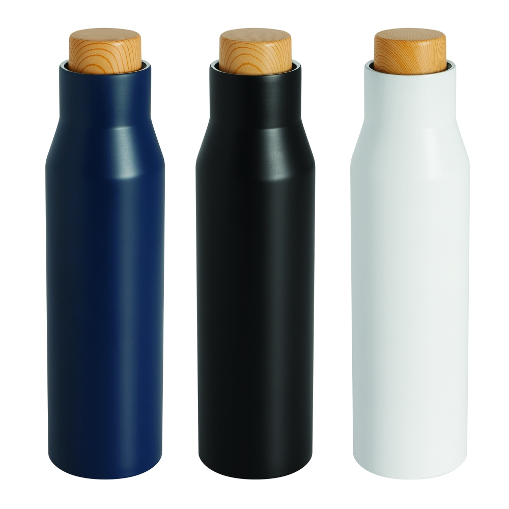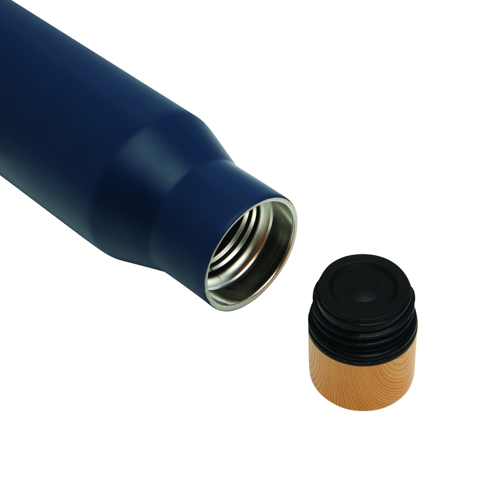 Artikel-Nr: INP56-0304607Vakuum-Isolierflasche DRINK NOBLY, doppelwandig: innen und außen aus Edelstahl, Deckel aus Bambus-Imitat mit sicherem Schraubverschluss und Silikon-Dichtring, Füllmenge ca. 500 ml, hält ca. 8 Stunden warm und bis zu 12 Stunden kalt, in Box