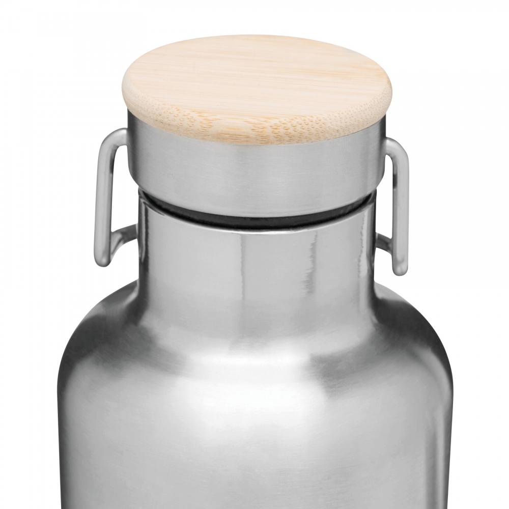 Artikel-Nr: INP56-0304599Vakuum-Isolierflasche JUMBO MILITARY, doppelwandig: außen und innen aus Edelstahl, Deckel mit Bambus, sicherer Schraubverschluss, Füllmenge ca. 1.000 ml, hält ca. 8 Stunden warm und bis zu 12 Stunden kalt
