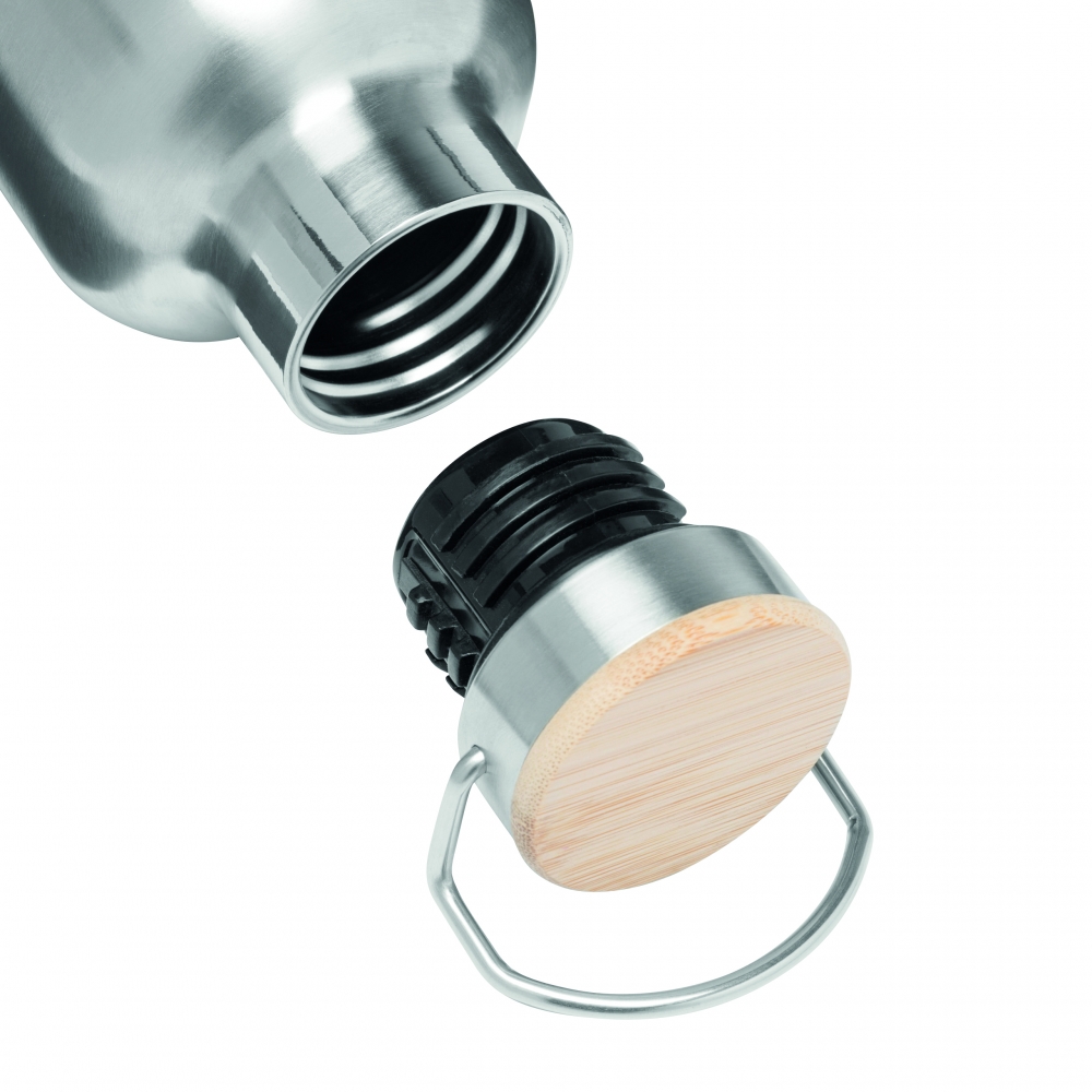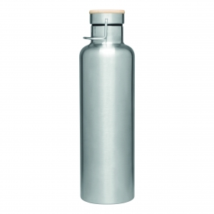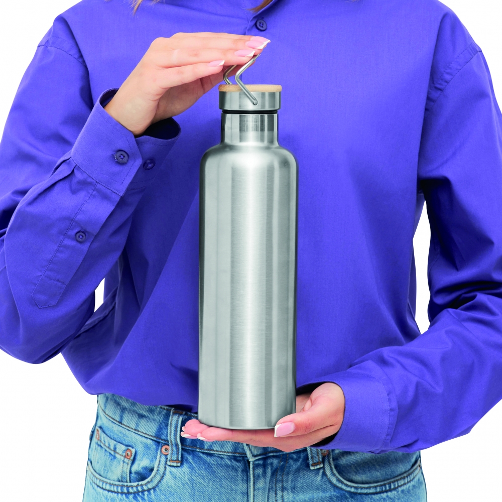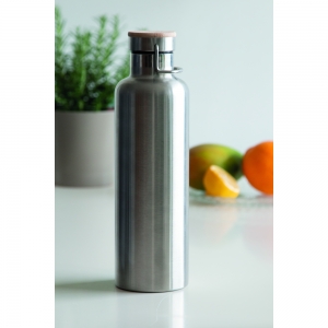 Artikel-Nr: INP56-0304599Vakuum-Isolierflasche JUMBO MILITARY, doppelwandig: außen und innen aus Edelstahl, Deckel mit Bambus, sicherer Schraubverschluss, Füllmenge ca. 1.000 ml, hält ca. 8 Stunden warm und bis zu 12 Stunden kalt